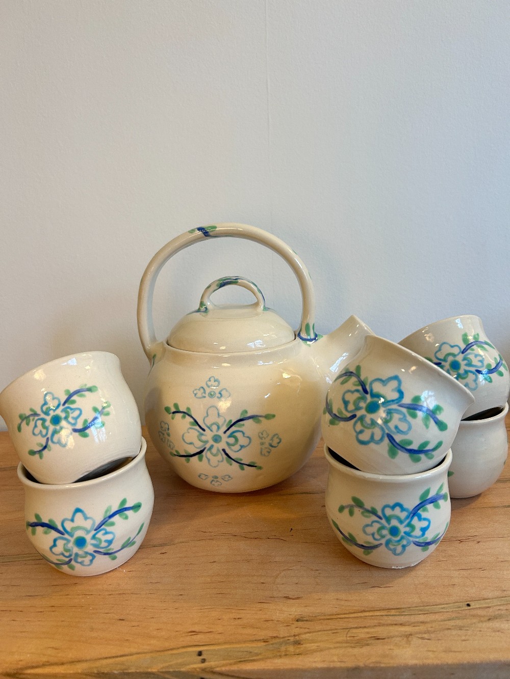 These teacups are meant to match the flower motif teapot. The floral motif is inspired by Bohemian and Russian styles, with my own unique twist.