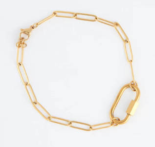 Perfect for every day! With a trendy 18k gold plated paperclip design and cute carabiner detailing, the Narelle Waterproof Paperclip Chain Carabiner Bracelet is easy to wear and easy to love. Hypoallergenic, tarnish resistant, with a lifetime color guarantee.