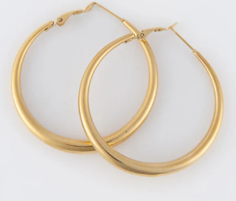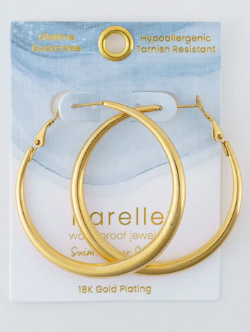 Chic and understated, the Narelle Waterproof Chunky Hoop Earrings offer a trendy hoop design in classic, goes-with-everything gold. With vintage pin catch closure and effortless style, these earrings are an instant wardrobe staple. Waterproof , 18K gold plated and made with a specialized PVD technique to withstand the rigors of life, from swimming and showering to sweating through your most intense workouts, all without ever losing its shine.