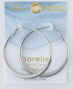 Chic and understated, the Narelle Waterproof Chunky Hoop Earrings offer a trendy hoop design in classic, goes-with-everything silver. With vintage pin catch closure and effortless style, these earrings are an instant wardrobe staple. Waterproof , stainless steel plated and made with a specialized PVD technique to withstand the rigors of life, from swimming and showering to sweating through your most intense workouts, all without ever losing its shine.