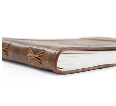 These leather journals make great gifts! Each one has unlined handmade paper inside and has an elastic band on the bottom to keep everything in place.